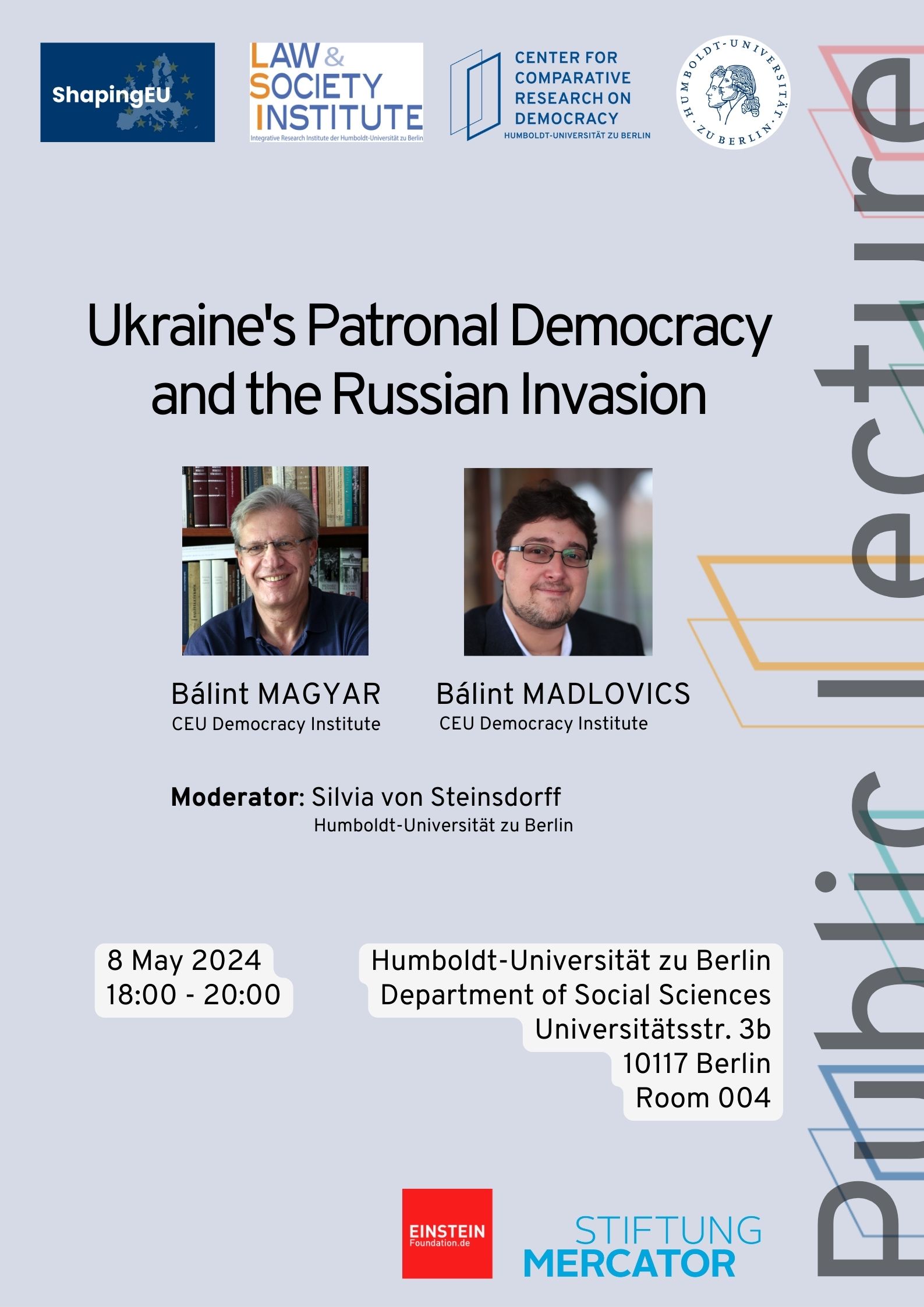 Grateful to everyone who made tonight’s event a success! 🙏 Bálint Magyar & Bálint Madlovics from CEU Democracy Institute shed light on ‘Ukraine’s Patronal Democracy and the Russian Invasion,’ expertly moderated by Prof. Dr. Silvia von Steinsdorff. Huge thanks to he Center for Comparative Research on Democracy (CCRD) and Integrative Research Institute Law & Society (LSI) for the collaboration. Stay tuned for more enlightening talks! And a special shoutout to our amazing students for their support. 🌟