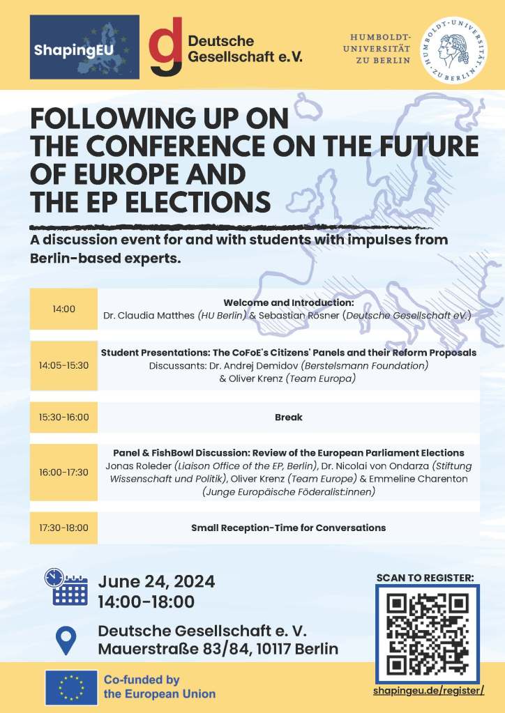 We also had an engaging Panel & FishBowl Discussion on the European Parliament Elections, featuring Jonas Roleder (Liaison Office of the EP, Berlin), Dr. Nicolai von Ondarza (Stiftung Wissenschaft und Politik), Oliver Krenz (Team Europe), & Emmeline Charenton (Junge Europäische Föderalist), moderated by Dr. Claudia Matthes.