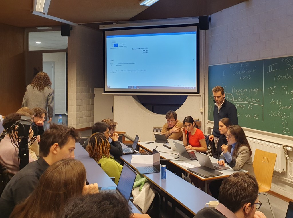 For the fourth time already, our joint course on “The EU and its environmental Policy: Preparing for COP 30” was held at UCLouvain. The programme centered around a simulation of an informal meeting of the Council of the European Union, for which the students from HU Berlin and UC Louvain took the positions EU member states, the European Commission and the European Council). They interacted during two days of negotiations across the delegations and came up with a common resolution. A visit to the EU Commission and talks with experts from DG Near allowed to deepen and crosscheck the experience.