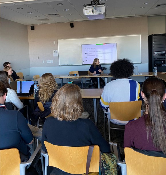 Erinn Whitaker shared a behind-the-scenes look at the day-to-day activities of intelligence analysts in the US, providing students with a rare glimpse into this vital and often mysterious profession. Her talk was full of engaging details about how analysts process information, navigate complex political landscapes, and provide crucial insights that shape government policies.